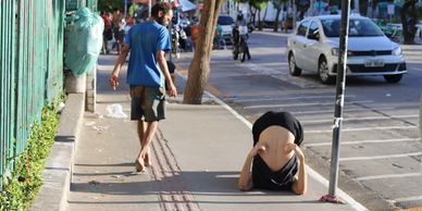 A bailarina Maria Epinefrina convoca artistas e interessados em performance para compor o Experimento de um Intergaláctico nº7. O convite é um exercício de permanência e de conexão com os espaços internos e, ao mesmo tempo, com a tentativa de ser coisa, de habitar em outro contorno, de enfiar a cabeça no chão. Estar em coletivo, na rua, em contraste com as pessoas que caminham em sua verticalidade.